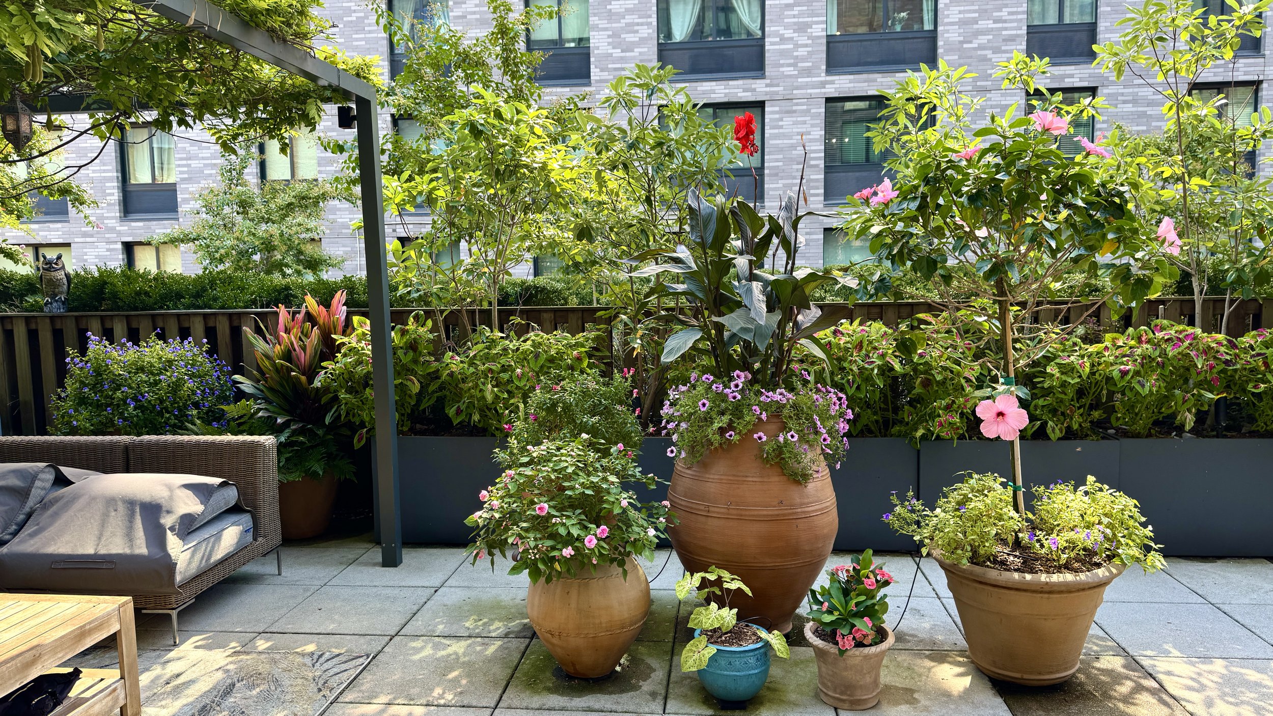 This garden faces north, and while it is certainly bright it doesn’t get a ton of sun after the morning. By using trees for height and lots of color from shrubs, perennials, and annuals - we have curated the perfect city escape in East Harlem.